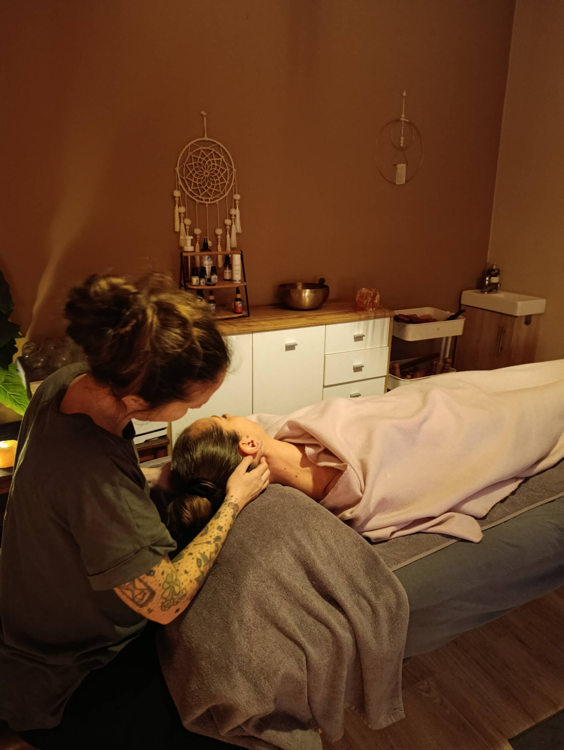 lymfatická drenáž, ktorá podporuje detoxikáciu, lifting, ktorý stimuluje svaly a tonizuje pleť, a akupresúra, ktorá harmonizuje energiu a stimuluje body vitality.